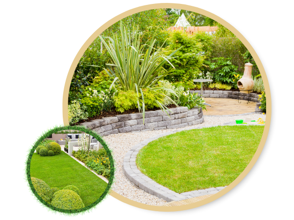 Our designs often include synthetic turf with stone or mulch borders, stylish paver patios, structured walkways, and garden areas supported by concrete retaining walls. We also plan smart irrigation layouts that save water and support plant health. Each feature is chosen to complement your home and lifestyle.